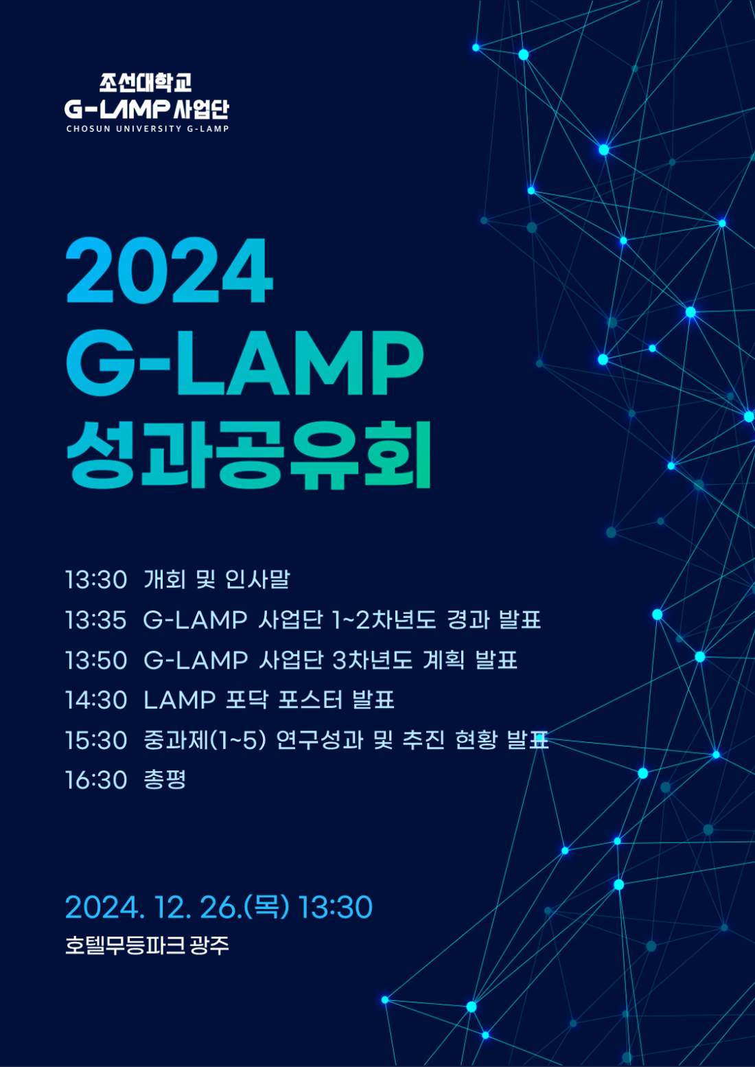 2024 G-LAMP 사업단 성과공유회 개최 관리자2024-12-26조회 308 첨부파일 슬라이드1.jpg (757.5 KB) 이전글 제1회 G-램프(LAMP) 페스티벌 참가 다음글 G-LAMP 사업단 1월 1차 초청세미나 목록보기
